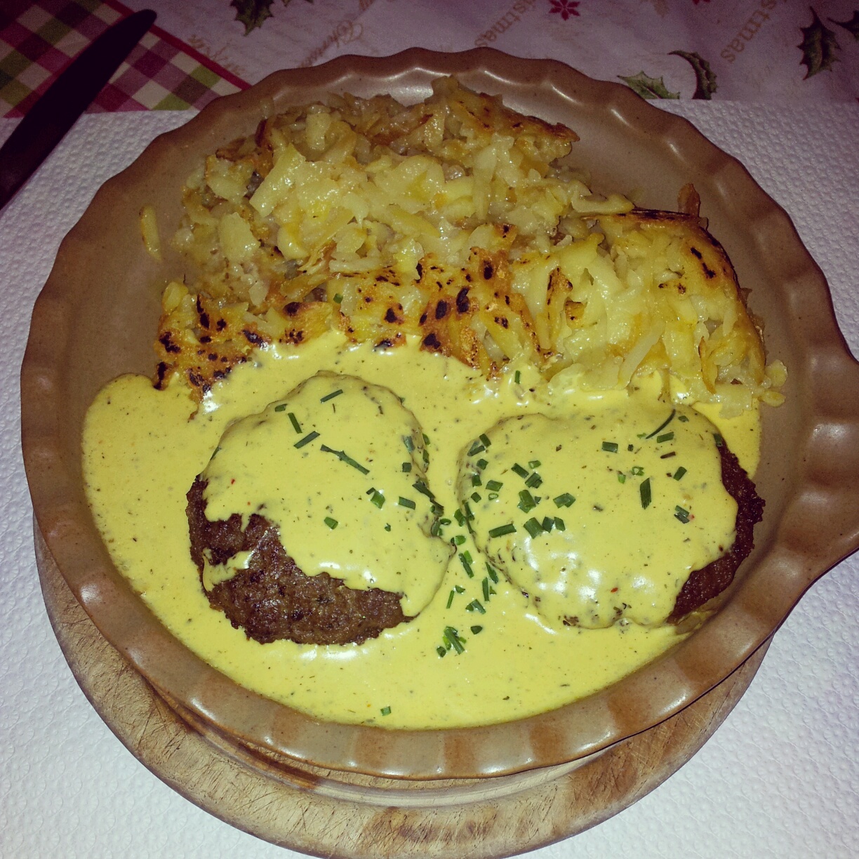 After having a drink at a pavement cafe, visiting the Laderach chocolate shop (again!) and not forgetting my bag of roasted chestnuts, we were on our way back to Lachen and to a rosti resaurant for dinner. We'd eaten at this restaurant on our last visit to Switzerland and it is SO good! If you're a rosti fan, this is definitely the place to go. And seeing as I love burgers and rosti, I couldn't have found a more perfect meal on the menu...
